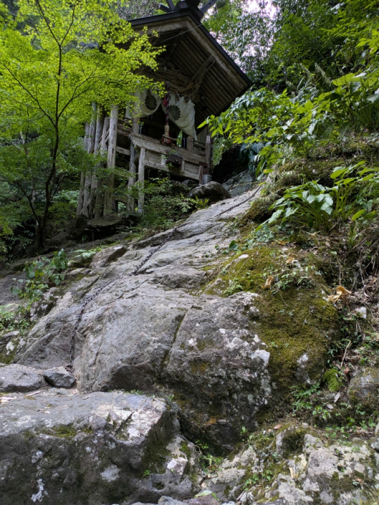 最後にこのチェーンを使って上に登ると天岩戸神社、なんです。
